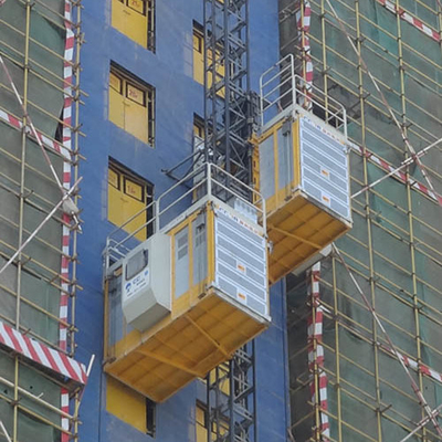 | Zweck | Vertikaler Transport des Mannes und der Materialien in der Baustelle oder dem Gebäude | Material | Stahlplatte Q355B kühle Rollen |